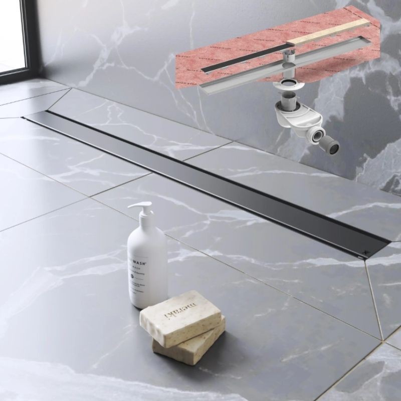 El sistema Evolux lineal inoxidable es la solución ideal para realizar el de drenaje con protección impermeable para platos de ducha de obra.
