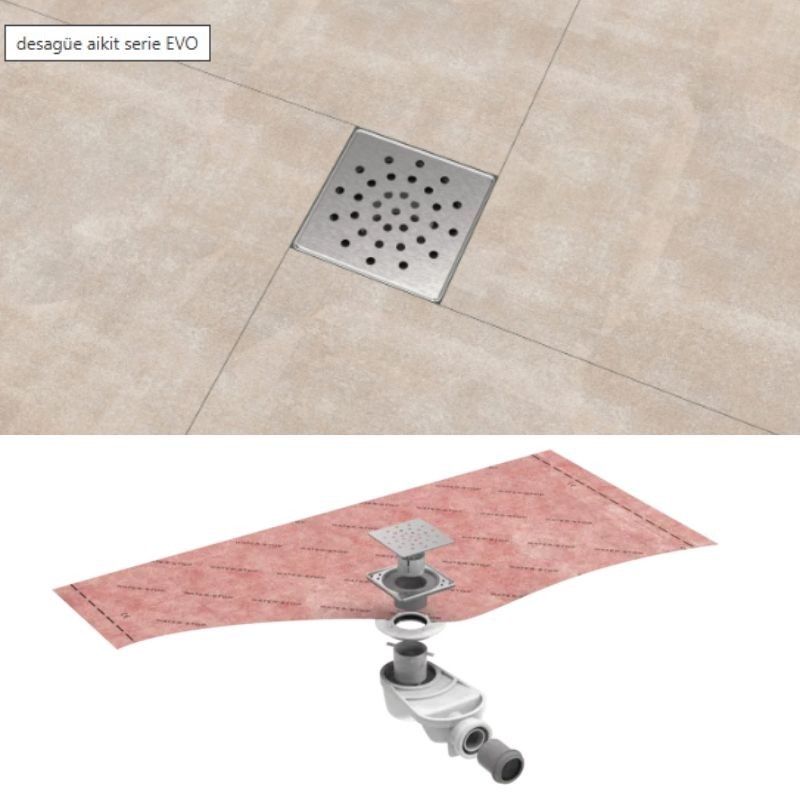 La solución de desagüe Akit Serie Evo incorpora la impermeabilización al desagüe para realizar la protección impermeable de zonas expuestas al agua y con evacuación en el suelo tales como platos de ducha de obra, baños adaptados, duchas colectivas en vestuarios, galerías y locales de lavaderos o coladurías…
