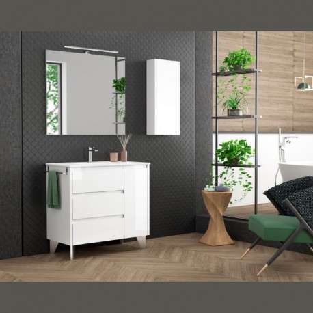 Con una composición de 3 cajones y 1 puerta, este mueble ofrece un amplio espacio de almacenamiento para tus productos de baño y accesorios. Los cajones, diseñados con extracción parcial y cierre amortiguado, proporcionan un funcionamiento suave y silencioso, añadiendo comodidad a tu rutina diaria.