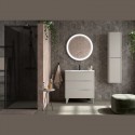 El mueble de baño con patas Escorpio destaca por sus tres amplios cajones, que ofrecen un espacio generoso para organizar tus productos de baño. Con guías Hettich de extracción parcial y cierre amortiguado, los cajones se deslizan suavemente y se cierran sin ruido, proporcionando comodidad y practicidad.