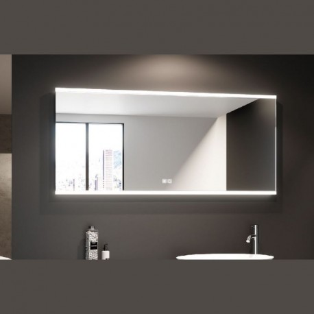 Espejo Tower con grosor del cristal 5mm. Dispone de zona antivaho, sensor on/off, e iluminación con 2 tiras luminosas led ambiental. Espejo reversible.