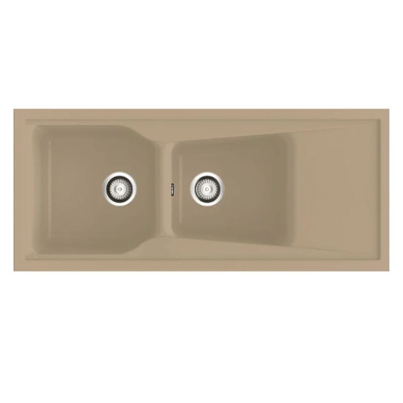 City 333 es un fregadero sobre encimera de un seno con una forma muy original que incluye un escurridor de 25 cm de ancho.