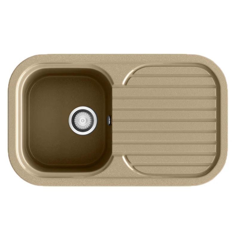 El modelo Basic Coral 121 es un fregadero de fibra de vidrio para colocarse sobre la encimera, con un diseño de esquinas redondeadas que aporta frescura a la cocina.