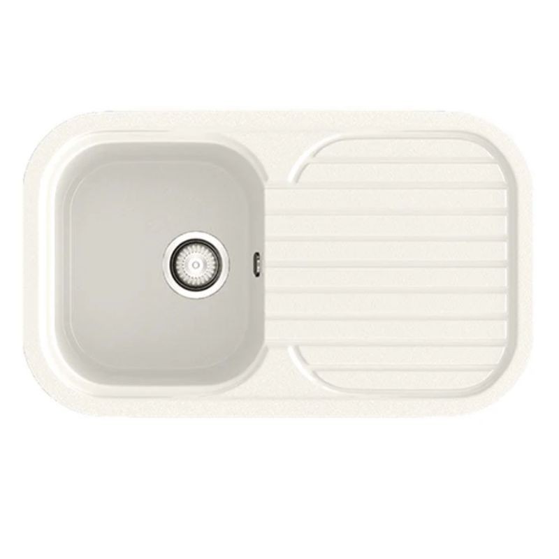 El modelo Basic Coral 121 es un fregadero de fibra de vidrio para colocarse sobre la encimera, con un diseño de esquinas redondeadas que aporta frescura a la cocina.