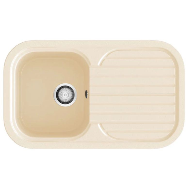 El modelo Basic Coral 121 es un fregadero de fibra de vidrio para colocarse sobre la encimera, con un diseño de esquinas redondeadas que aporta frescura a la cocina.
