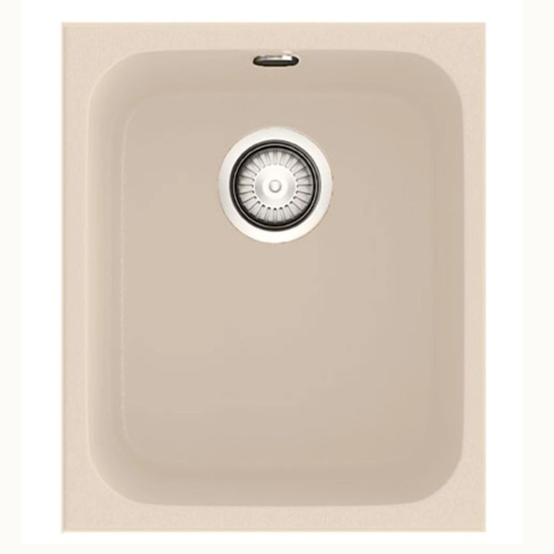 Es fácilmente combinable junto a otro fregadero y puede colocarse tanto sobre encimera como bajo encimera. Un fregadero de líneas curvas sencillo y funcional.