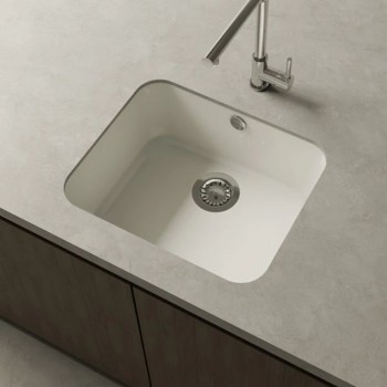 Puede colocarse tanto sobre encimera como bajo encimera. Un fregadero de líneas curvas sencillo y funcional, perfecto para disponer de espacio en cocinas donde dos senos ocuparían demasiado.