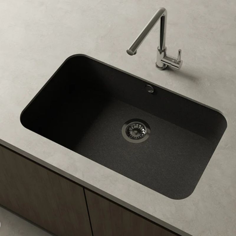 Puede colocarse tanto sobre encimera como bajo encimera. Un fregadero de líneas curvas sencillo y funcional.