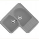 Este fregadero Jade 118 está pensado para aprovechar todo el espacio de la cocina gracias a su colocación en esquina, quedando el seno de mayor tamaño en el rincón y el escurridor a la derecha de éste.