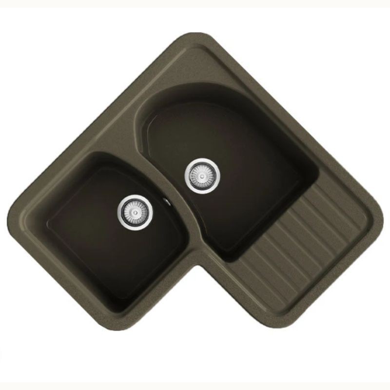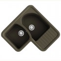 Este fregadero Jade 118 está pensado para aprovechar todo el espacio de la cocina gracias a su colocación en esquina, quedando el seno de mayor tamaño en el rincón y el escurridor a la derecha de éste.