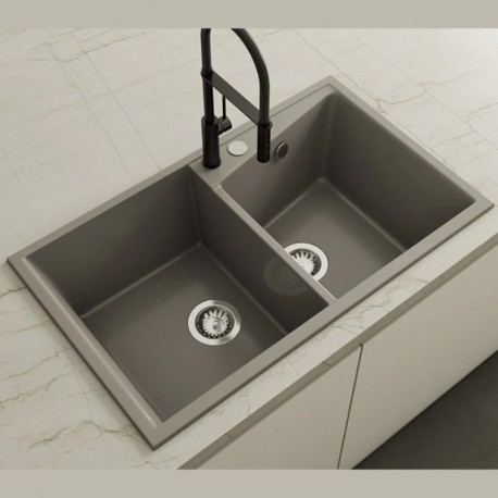 Kuma 304 es un fregadero sobre encimera de gran tamaño de planta rectangular con dos senos ligeramente diferentes entre sí y que miden 39 cm de ancho cada uno, un diseño rompedor de líneas diagonales ideal para espacios de estética industrial.