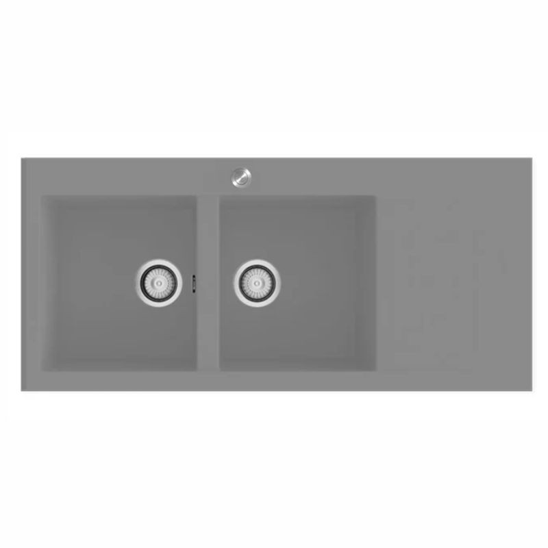 Shira 507 es un fregadero de tamaño grande con dos senos iguales de planta cuadrada que incorpora un escurridor para dejar la vajilla.