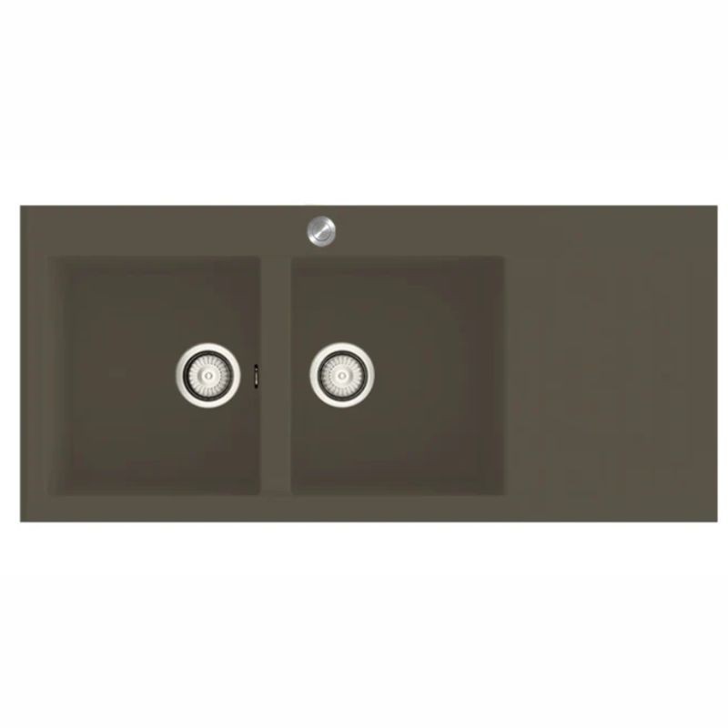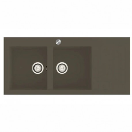 Shira 507 es un fregadero de tamaño grande con dos senos iguales de planta cuadrada que incorpora un escurridor para dejar la vajilla.