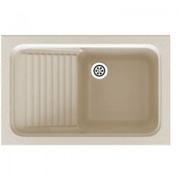 Este clásico lavadero tiene un seno cuadrado de 30×30 cm y un escurridor frontal para el prelavado de la ropa de 30×21 cm.