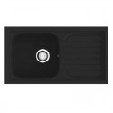 Topacio 116 es un fregadero de fibra de vidrio sobre encimera. Su diseño de planta rectangular y líneas rectas contrasta con las esquinas redondeadas del fregadero.