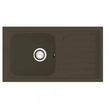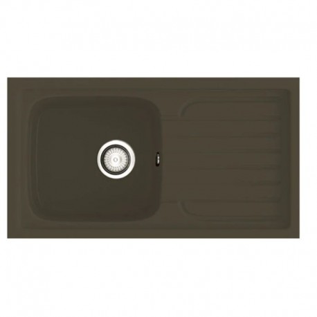 Topacio 116 es un fregadero de fibra de vidrio sobre encimera. Su diseño de planta rectangular y líneas rectas contrasta con las esquinas redondeadas del fregadero.