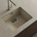 Es un fregadero pequeño muy elegante y práctico pensado, como toda la colección, para cocinas modernas de estilo contemporáneo y minimalista.