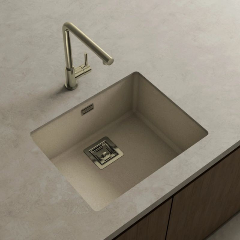 Es un fregadero pequeño muy elegante y práctico pensado, como toda la colección, para cocinas modernas de estilo contemporáneo y minimalista.