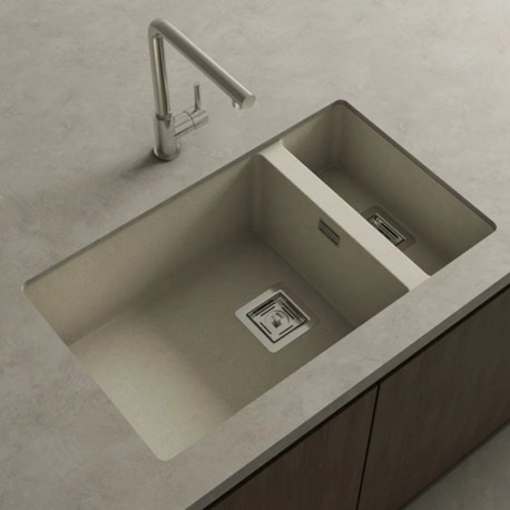 Zie 70 1½C es un fregadero compuesto por un seno de tamaño medio y un segundo seno más pequeño de menor profundidad, pensado para limpiar alimentos.