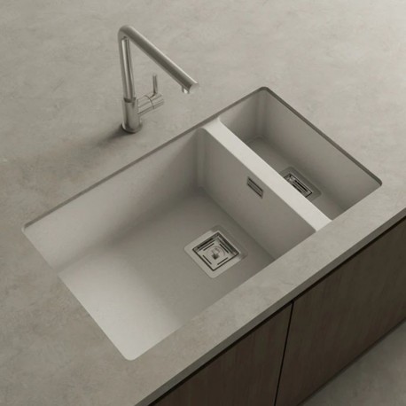 Zie 70 1½C es un fregadero compuesto por un seno de tamaño medio y un segundo seno más pequeño de menor profundidad, pensado para limpiar alimentos.