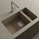 Zie 70 1½C es un fregadero compuesto por un seno de tamaño medio y un segundo seno más pequeño de menor profundidad, pensado para limpiar alimentos.