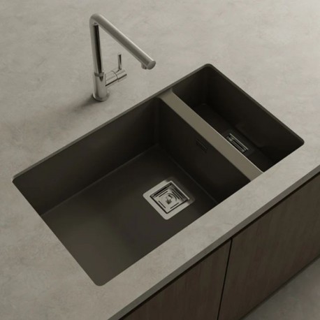 Zie 70 1½C es un fregadero compuesto por un seno de tamaño medio y un segundo seno más pequeño de menor profundidad, pensado para limpiar alimentos.
