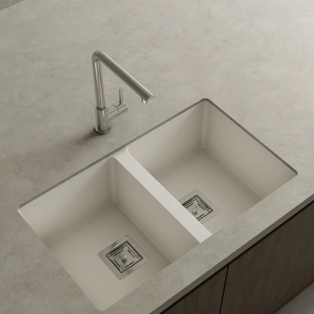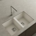 Zie 70 2C es un fregadero compuesto por dos senos de 33 cm de ancho cada uno, con una separación entre ellos de 40 mm.