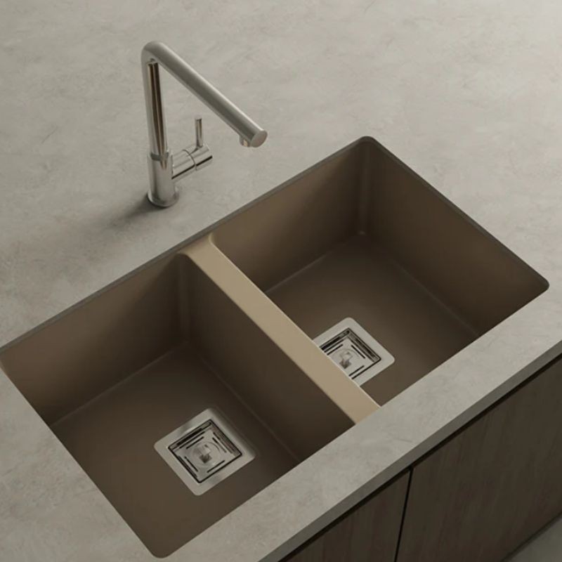 Zie 70 2C es un fregadero compuesto por dos senos de 33 cm de ancho cada uno, con una separación entre ellos de 40 mm.
