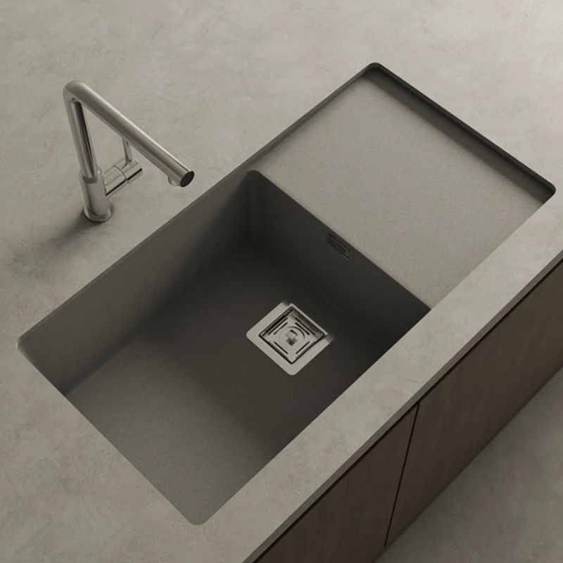 Zie 81 es un fregadero compuesto por un seno y un escurridor para dejar la vajilla, un detalle que aporta elegancia y comodidad a la cocina.