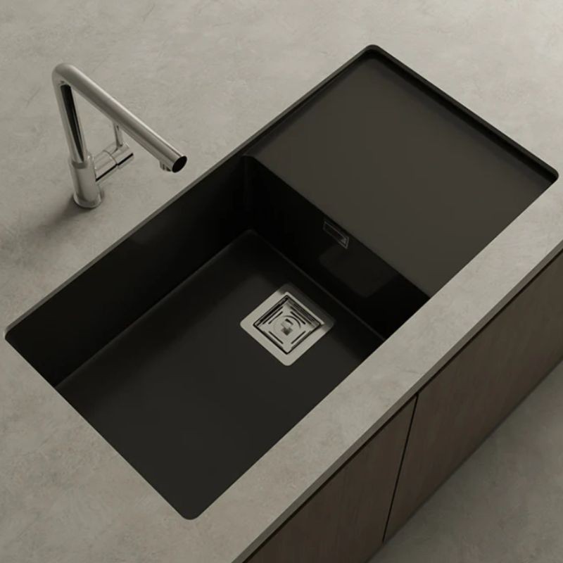 Zie 81 es un fregadero compuesto por un seno y un escurridor para dejar la vajilla, un detalle que aporta elegancia y comodidad a la cocina.