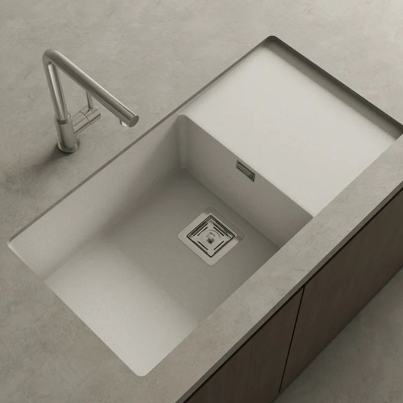 Zie 81 es un fregadero compuesto por un seno y un escurridor para dejar la vajilla, un detalle que aporta elegancia y comodidad a la cocina.