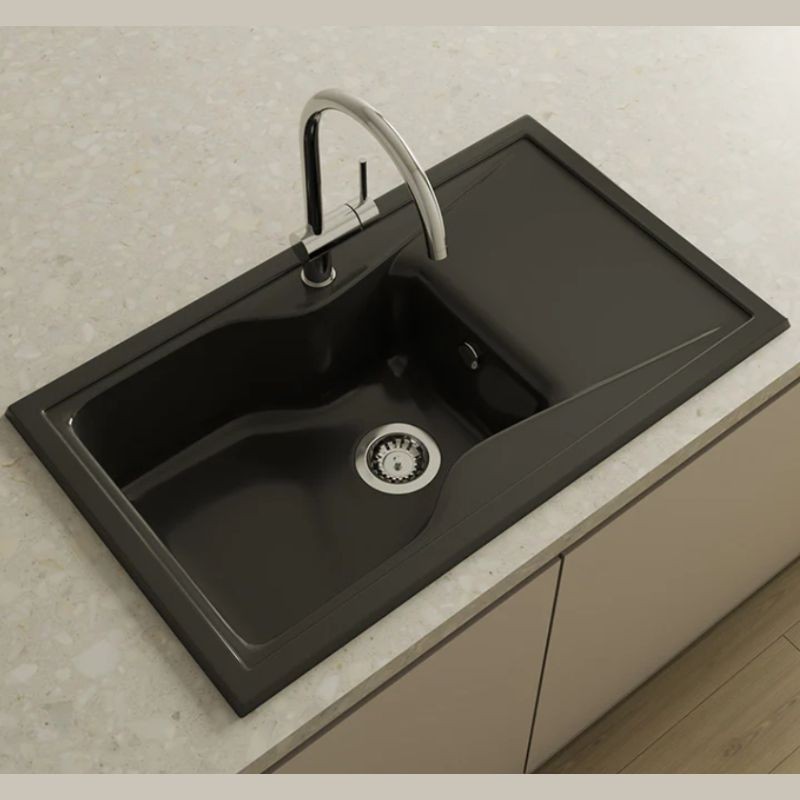 City 331 es un fregadero sobre encimera de un seno con una forma muy original que incluye un escurridor de 25 cm de ancho.