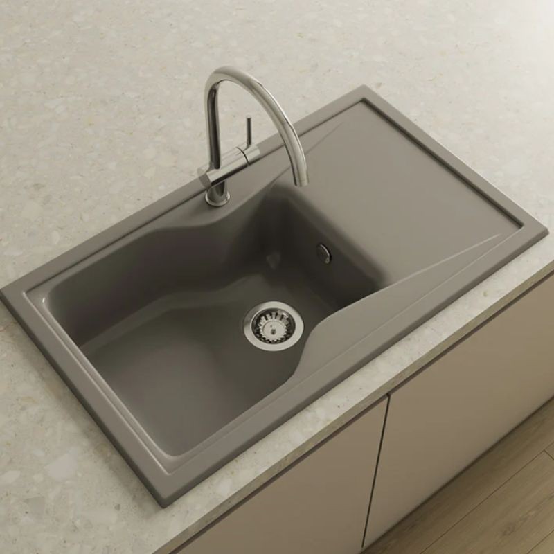 City 331 es un fregadero sobre encimera de un seno con una forma muy original que incluye un escurridor de 25 cm de ancho.