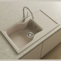 City 331 es un fregadero sobre encimera de un seno con una forma muy original que incluye un escurridor de 25 cm de ancho.